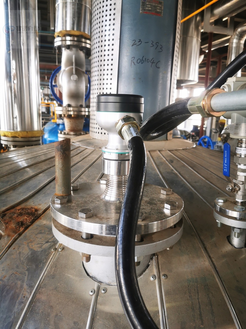 - 安装在罐体中心或液位平稳处,保证测量的准确性。若不能安装在中心,应与罐壁保持一定距离,一般不小于300mm,防止罐壁反射波干扰。 安装角度 - 天线要垂直于液位表面,以确保雷达波能垂直发射和接收,减少测量误差。